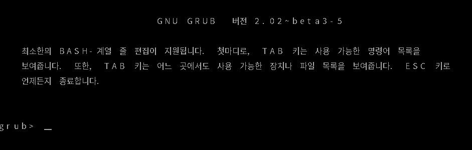 다음그림과 같이 grub 쉘로 빠져버린다.